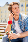 Zdjęcie "młody człowiek wesoły, rozmowy na telefon" może być wykorzystywane do celów osobistych i komercyjnych zgodnie z warunkami zakupionej licencji Royalty-free. Obraz jest dostępny do pobrania w jakości wysokiej rozdzielczości do 5760x3840.
