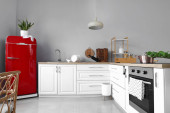 Zdjęcie "Stylowe wnętrze nowoczesnej kuchni" może być wykorzystywane do celów osobistych i komercyjnych zgodnie z warunkami zakupionej licencji Royalty-free. Obraz jest dostępny do pobrania w jakości wysokiej rozdzielczości do 5760x3840.