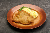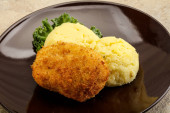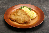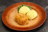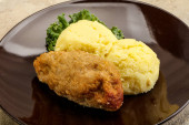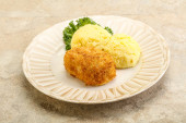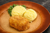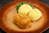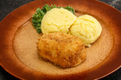Chrupiący kotlet z kurczaka z mięsa mielonego z puree ziemniaczanym
