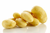 Worek z młodymi ziemniakami izolowany na białym tle