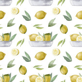 Zdjęcie "Płynny wzór z cytryn i liści izolowanych na białym tle. Letnia ilustracja akwarela. Tekstura tkanin, papier pakowy, odzież, ubrania, opakowanie." może być wykorzystywane do celów osobistych i komercyjnych zgodnie z warunkami zakupionej licencji Royalty-free. Obraz jest dostępny do pobrania w jakości wysokiej rozdzielczości do 5760x3840.