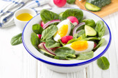Zdjęcie "Sałatka z jaj, rzodkiewki i ogórek." może być wykorzystywane do celów osobistych i komercyjnych zgodnie z warunkami zakupionej licencji Royalty-free. Obraz jest dostępny do pobrania w jakości wysokiej rozdzielczości do 5760x3840.