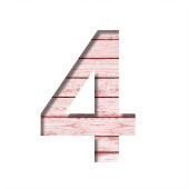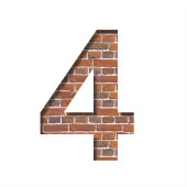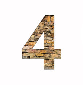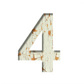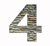 Czcionka na białej cegle. Cyfra 4, 4 jest wycięta z białego papieru tło niechlujnej białej ceglanej ściany. Popularne czcionki dekoracyjne