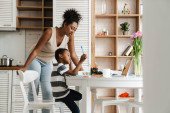 Zdjęcie "Skupiony afrykański chłopiec bawiący się z jej młodym ojcem w domu" może być wykorzystywane do celów osobistych i komercyjnych zgodnie z warunkami zakupionej licencji Royalty-free. Obraz jest dostępny do pobrania w jakości wysokiej rozdzielczości do 5760x3840.