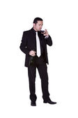 piękna dziewczyna pinup retro z winem, ciesząc się chłodnego powietrza z wentylatora