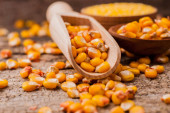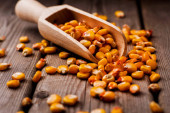 łyżka mielonej grzyby.Kasza kukurydziana i nasiona