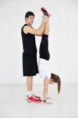 szczęśliwy młody grupy w ćwiczeniu i zrelaksować się w klubie fitness
