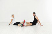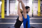 szczęśliwy młody grupy w ćwiczeniu i zrelaksować się w klubie fitness