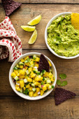 Chunky domowej roboty guacamole w misce z chipsami tortilla