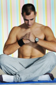młody człowiek w fintess sport club ćwiczenia withweights i relaks