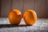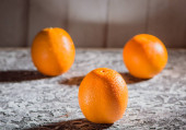 Fresh oranges on the table.Juicy fruit vitamins are a useful food for vegans.