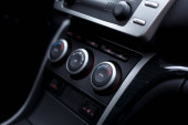 Przycisk ogrzewania siedzeń dla pasażerów z tyłu. Kratka klimatyzacyjna w samochodzie.