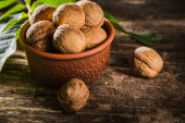orzech włoski i pęknięty strzał z bliska.