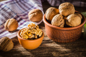 Zdjęcie "bowl with fresh walnuts, leaves and nut shell on gray stone background. Autumn seasonal." może być wykorzystywane do celów osobistych i komercyjnych zgodnie z warunkami zakupionej licencji Royalty-free. Obraz jest dostępny do pobrania w jakości wysokiej rozdzielczości do 5760x3840.