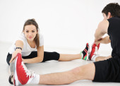 szczęśliwy młody grupy w ćwiczeniu i zrelaksować się w klubie fitness