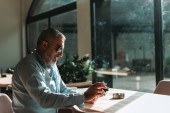 Zdjęcie "Samotny starszy mężczyzna trzymający pigułkę w pobliżu wody na stole " może być wykorzystywane do celów osobistych i komercyjnych zgodnie z warunkami zakupionej licencji Royalty-free. Obraz jest dostępny do pobrania w jakości wysokiej rozdzielczości do 5760x3840.