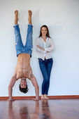 trening fitness szczęśliwa para młoda i zabawy w sport club siłownia