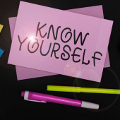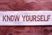 Poznaj siebie - słowa w zabytkowych drewnianych lettepress drukowania bloków, na białym tle