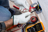 Zdjęcie "Elektryk ze śrubokrętem mocuje przewody elektryczne w zaciskach gniazdka instalacji elektrycznej. Przemysł budowlany." może być wykorzystywane do celów osobistych i komercyjnych zgodnie z warunkami zakupionej licencji Royalty-free. Obraz jest dostępny do pobrania w jakości wysokiej rozdzielczości do 5760x3840.