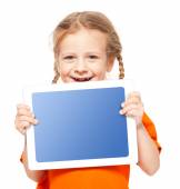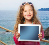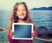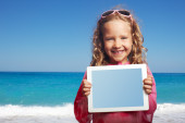 dziecko na plaży z komputera typu tablet