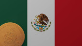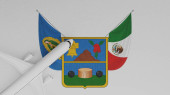 Top Down Widok samolotu w rogu na szczycie flagi kraju Meksyk