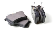 Kompletny zestaw przednich klocków hamulcowych izolowanych na białym tle