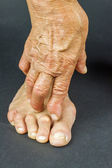 ręka kobiety zniekształcone z reumatoidalnym zapaleniem stawów