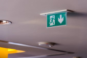 Zdjęcie "Znak Arrow light box EMERGENCY Fire EXIT wisi na suficie w szpitalnym chodniku, Pomysł na ćwiczenia przeciwpożarowe lub ewakuacyjne." może być wykorzystywane do celów osobistych i komercyjnych zgodnie z warunkami zakupionej licencji Royalty-free. Obraz jest dostępny do pobrania w jakości wysokiej rozdzielczości do 5760x3840.