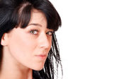 młoda kobieta w turkusowy sweter. portret studio szczegół mody.