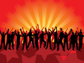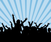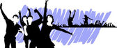 ilustracja partii z sylwetkami tłumu i elementów projektu