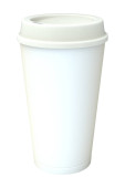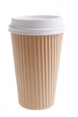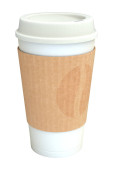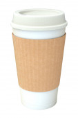 Pusty kubek na wynos, pokrywa i rękaw izolowane na białym tle