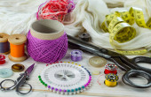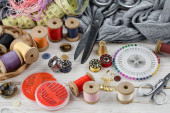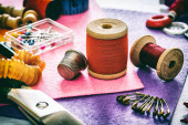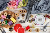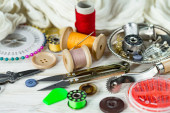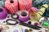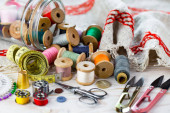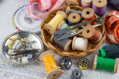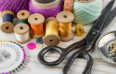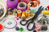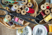 Rzemiosło, nici, igły do szycia.