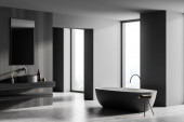 Zdjęcie "Zbliżenie na fantazyjne, owalne i białe umywalka łazienka ze stylowymi srebrnymi kranami i dekoracje na granitowym blatu" może być wykorzystywane do celów osobistych i komercyjnych zgodnie z warunkami zakupionej licencji Royalty-free. Obraz jest dostępny do pobrania w jakości wysokiej rozdzielczości do 5760x3840.