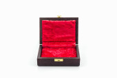 pudełko różowy aksamitu, na białym tle