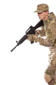 współczesnego żołnierza z karabinu na białym tle na białym tle