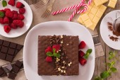 Brazylijskie ciasto miodowe przecięte na pół z brygadierem (widok z góry).