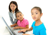 młode uczennice z nauczycielem