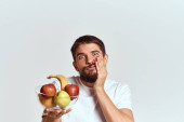 emocjonalny człowiek grimace kiwi w pobliżu oczy owoce