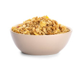 Miska ze smaczną granolą na białym tle