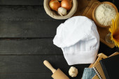 Zdjęcie "Kapelusz szefa kuchni i jajka na stole w kuchni" może być wykorzystywane do celów osobistych i komercyjnych zgodnie z warunkami zakupionej licencji Royalty-free. Obraz jest dostępny do pobrania w jakości wysokiej rozdzielczości do 5760x3840.