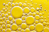 Piękne i fantastyczne makro zdjęcie kropel wody w oleju na żółtym tle. Sztuka abstrakcyjna