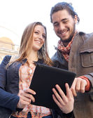 Zdjęcie "turystów za pomocą tabletu w mieście" może być wykorzystywane do celów osobistych i komercyjnych zgodnie z warunkami zakupionej licencji Royalty-free. Obraz jest dostępny do pobrania w jakości wysokiej rozdzielczości do 5760x3840.