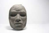 Cybernetyczna ręka z gliny i elektroniczne materiały do recyklingu. Rzeźba na białym tle gipsowym. Pojęcie transhumanizmu.