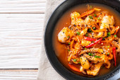 Zdjęcie "Kurczak Jambalaya, gotowane kawałki piersi kurczaka, w przyprawionym sosie pomidorowym z chorizo, ryż pełnoziarnisty, szpinak dla niemowląt, pokrojona w kostkę dynia i pokrojona w plasterki czerwona papryka, kuchnia kreolska" może być wykorzystywane do celów osobistych i komercyjnych zgodnie z warunkami zakupionej licencji Royalty-free. Obraz jest dostępny do pobrania w jakości wysokiej rozdzielczości do 5760x3840.