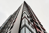 Widok fasady nowego wielopiętrowego domu mieszkalnego. Słoneczny dzień. Nowe domy Kazań. Pojęcie budynków i nieruchomości