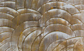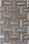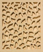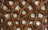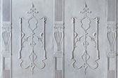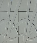Trzy brylantowe kształty wykonane z zardzewiałej kradzieży na jasnoszarej ścianie.