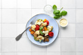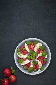 panzanella tomato salad veggie croutons, olive oil, rusk vegetable healthy food meal snack copy space food background keto or paleo diet