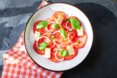 Zdjęcie "panzanella tomato salad veggie croutons, olive oil, rusk vegetable healthy food meal snack copy space food background keto or paleo diet" może być wykorzystywane do celów osobistych i komercyjnych zgodnie z warunkami zakupionej licencji Royalty-free. Obraz jest dostępny do pobrania w jakości wysokiej rozdzielczości do 5760x3840.