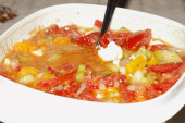 Pyszna sałatka z pomidorem, cebulą i oliwą z oliwek
