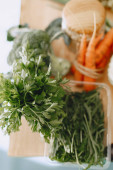Portret uśmiechniętego rolnika trzymającego koszyk warzyw